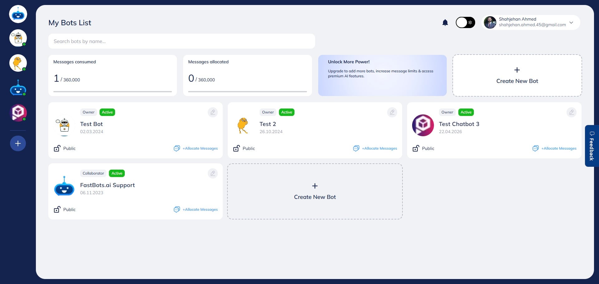 Navigate to https://app.fastbots.ai/ and sign in to your account.