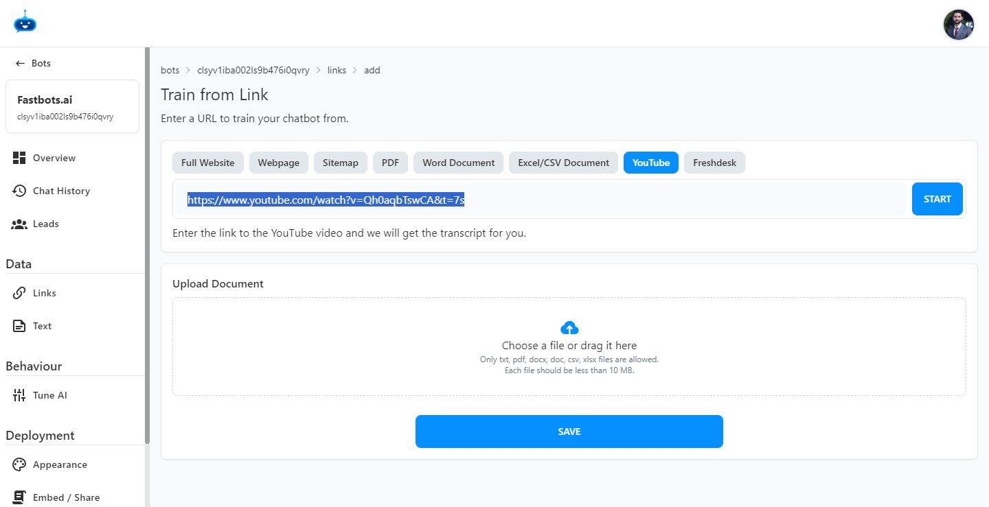 Learn how to do the training of your chatbot using a YouTube video.